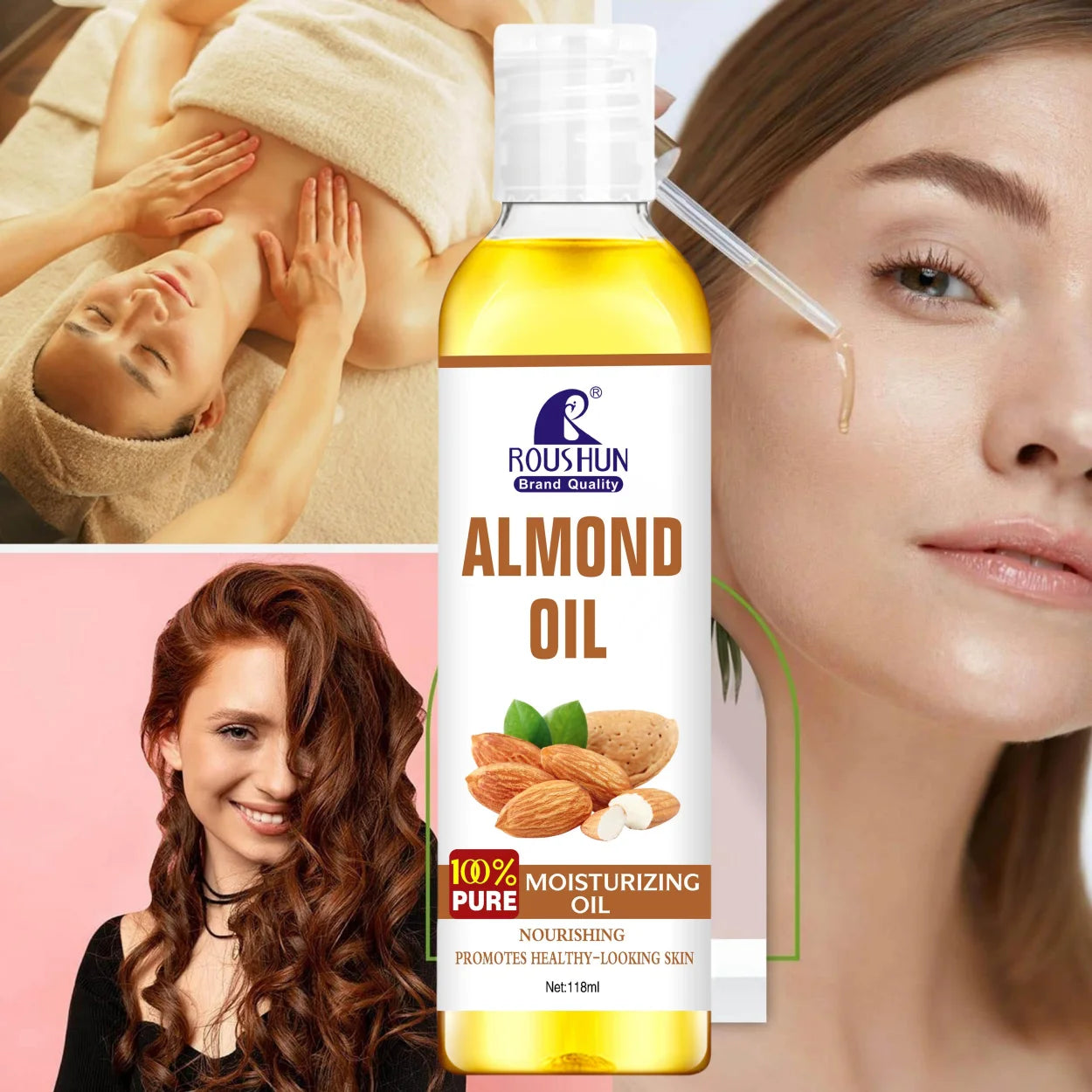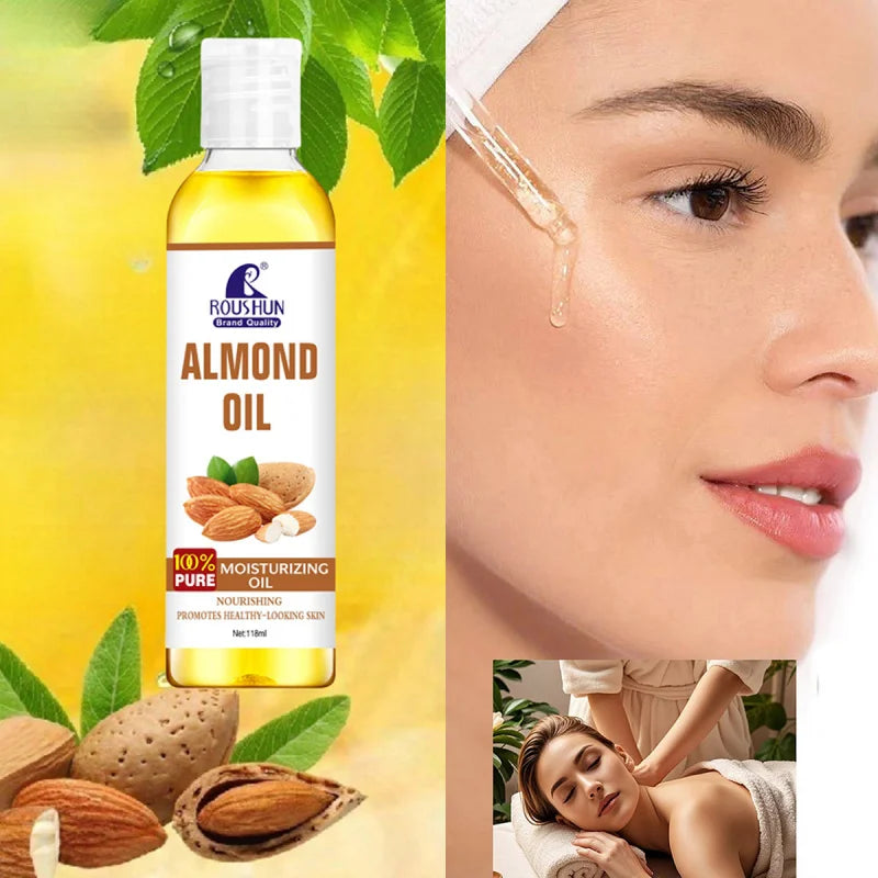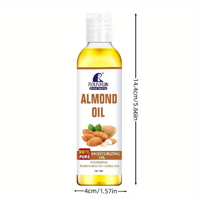 Huile Corps Amande Douce 118ml ROUSHUN - Hydratation Multi-Usages Visage Corps Mains Lèvres Yeux, Format Généreux