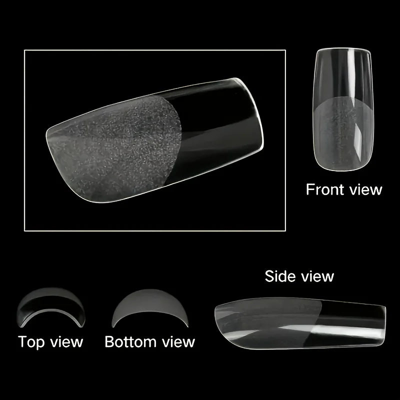 Lot 120 Capsules Ongles Carrées Medium Acrylique Semi-Mat Couverture Complète Gel Doux Pré-Formées DIY Manucure Salon Transparent