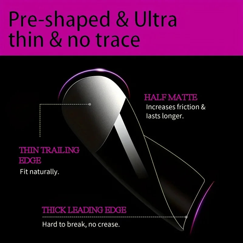 120 capsules ongles carrées medium acrylique semi-mat. Couverture complète gel doux pré-formées pour DIY manucure et salon transparent.