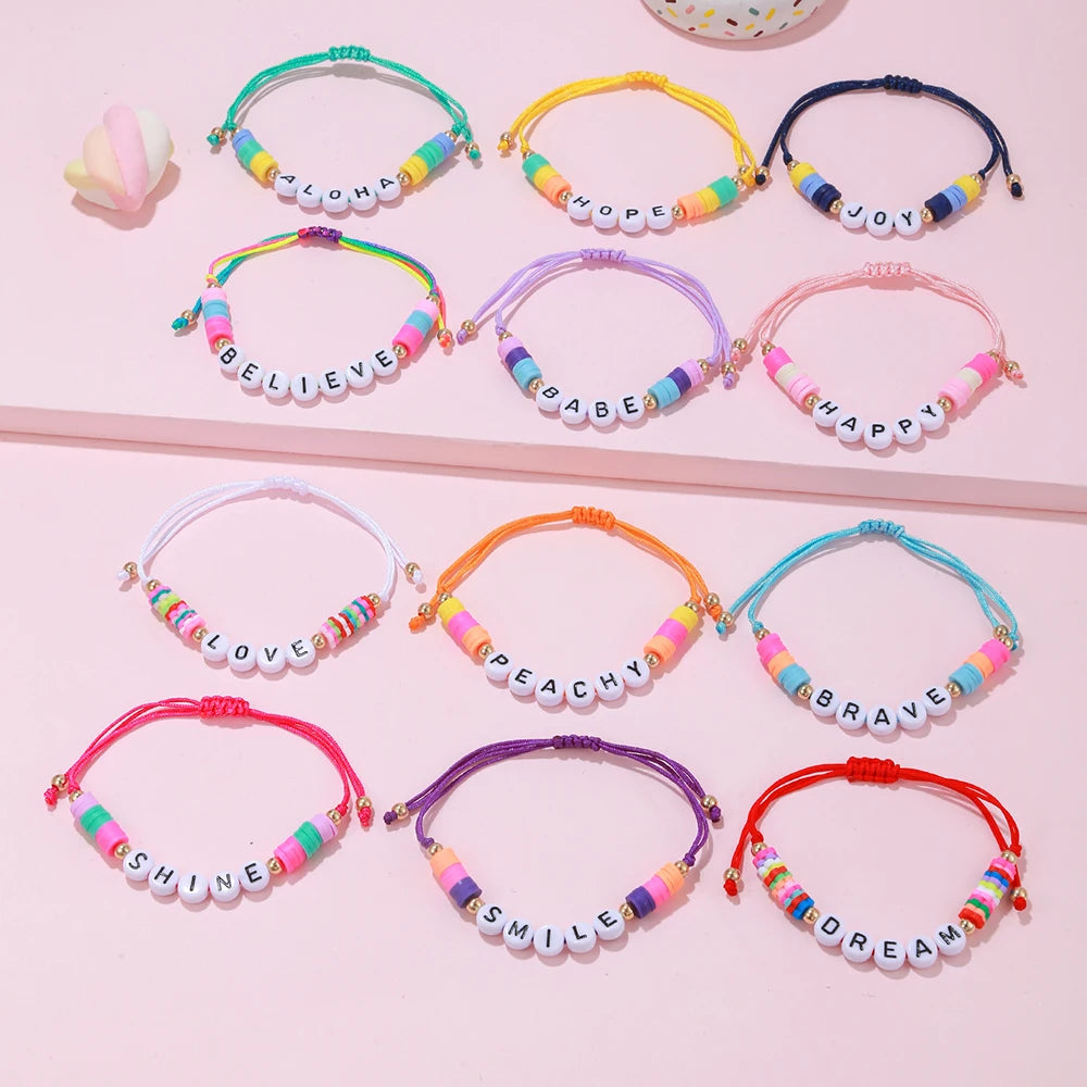 Lot de 12 Bracelets Fille Perles Argile - Messages Positifs Ajustables Tressés