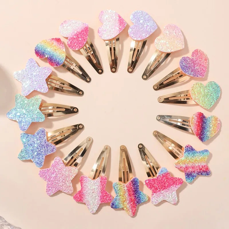 Lot de 16 Barrettes Fille Paillettes - Fleur Arc-en-Ciel Lapin BB Clips Cheveux