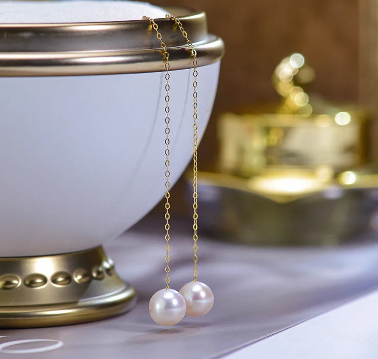 Élégance absolue avec ces boucles d'oreilles or 18k perle femme longues pendantes, un bijou raffiné et luxueux.