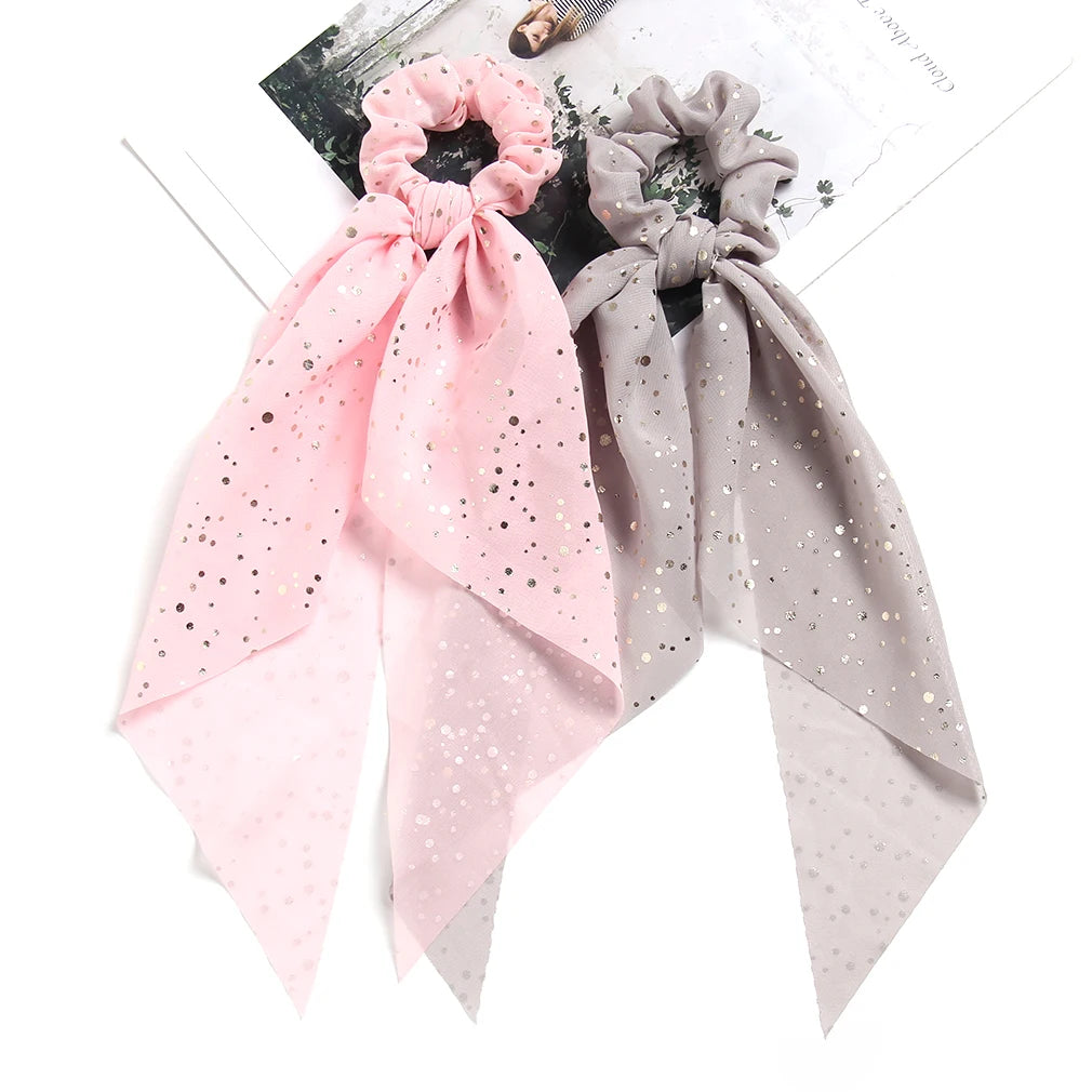 Chouchou Cheveux Long Ruban Mousseline Imprimé Floral - Élastique Doux Queue de Cheval Foulard Accessoires Cheveux