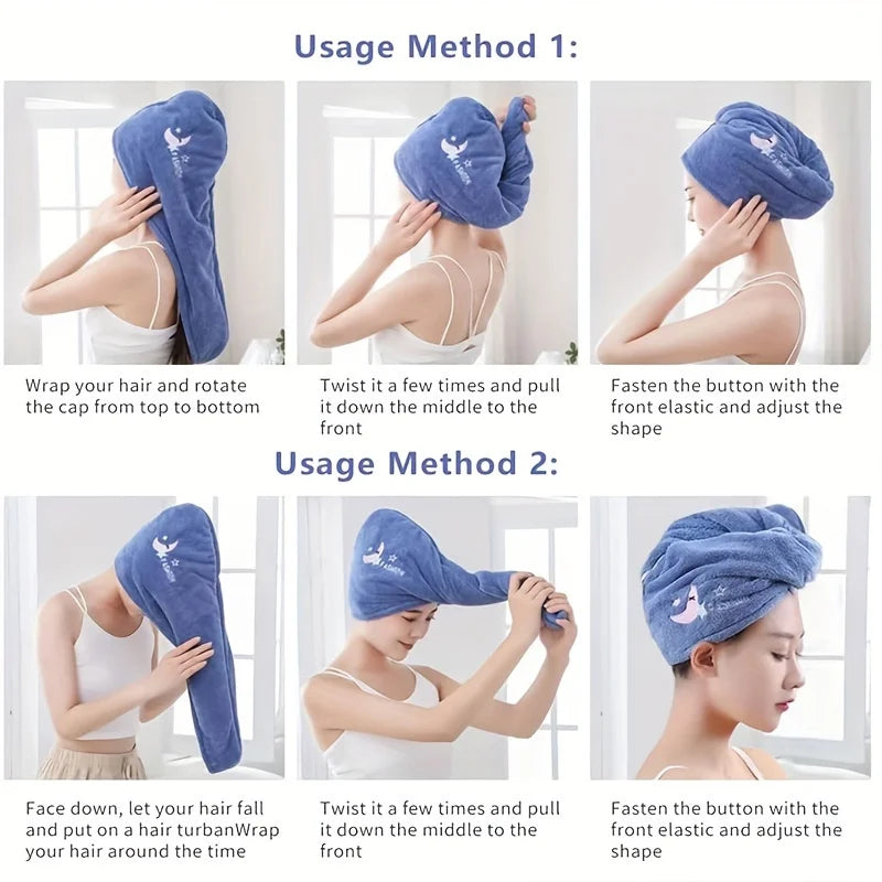 Séchez vos cheveux rapidement et en douceur avec cette serviette turban en microfibre qui absorbe l'eau efficacement tout en protégeant vos cheveux pour un séchage sain sans chaleur excessive.