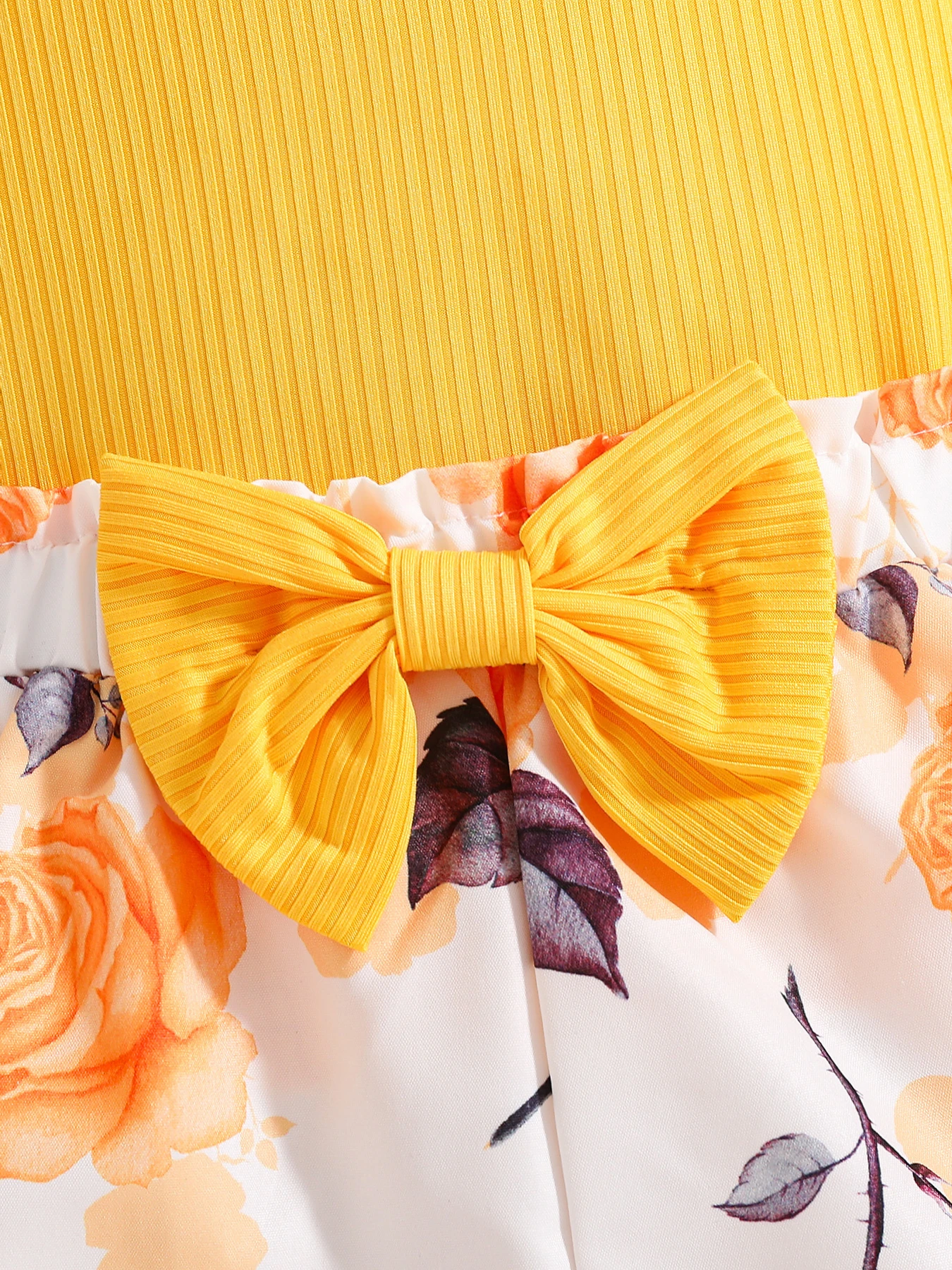 2025 Fashion Girl Summer solid color breathable, wear-resistant and washable knitted top with flower print pattern dress