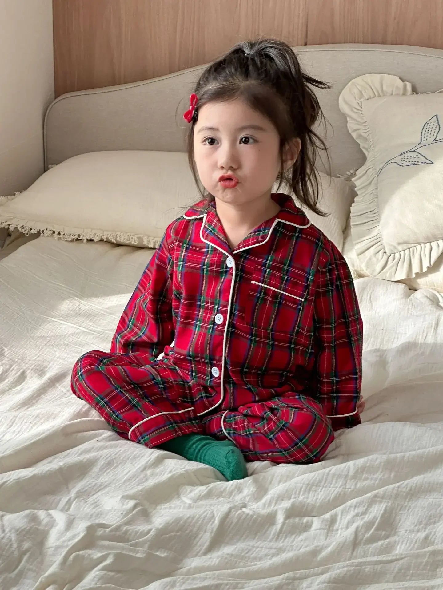 Pyjama Noël Enfant - Ensemble Coton Carreaux 2 Pièces Boutons Xmas