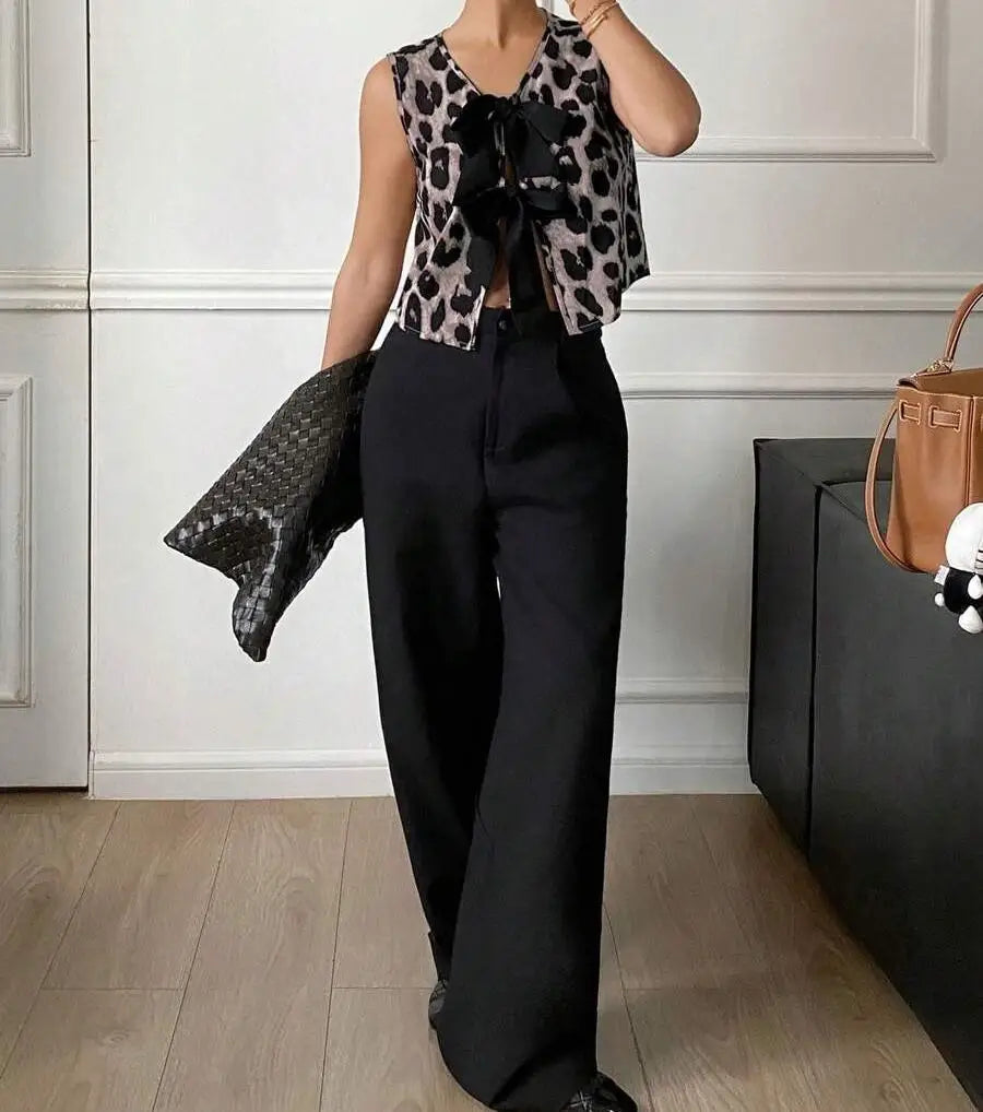 Débardeur Léopard Col V à Lacets - Audace et Féminité