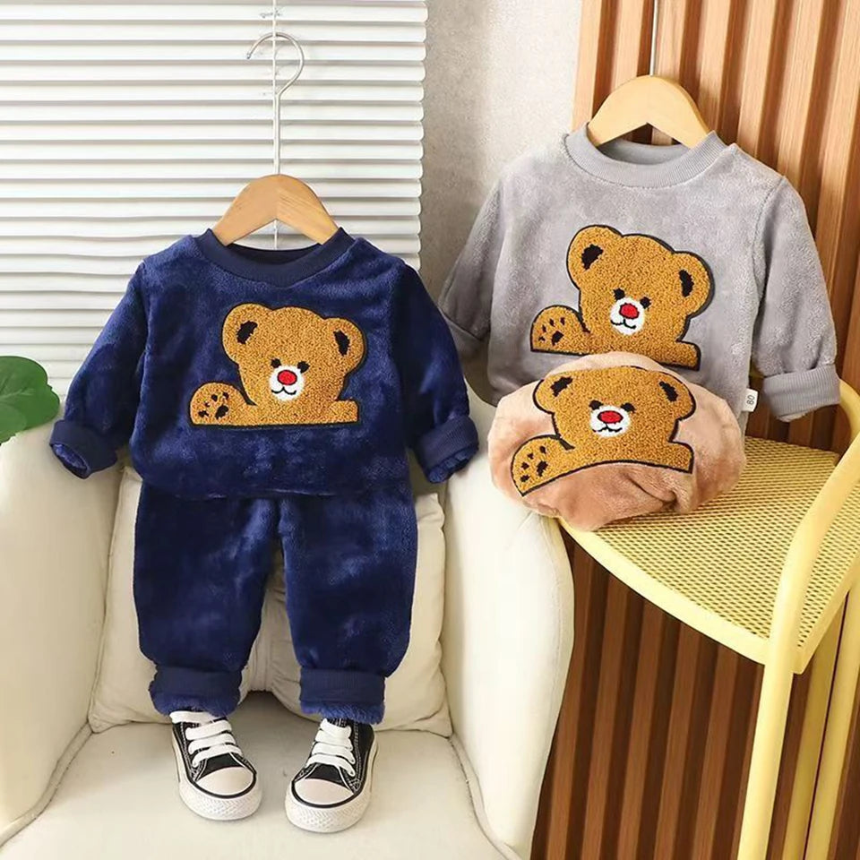 Ensemble Pyjama Enfant Ours Cartoon - Flanelle Polaire Hiver