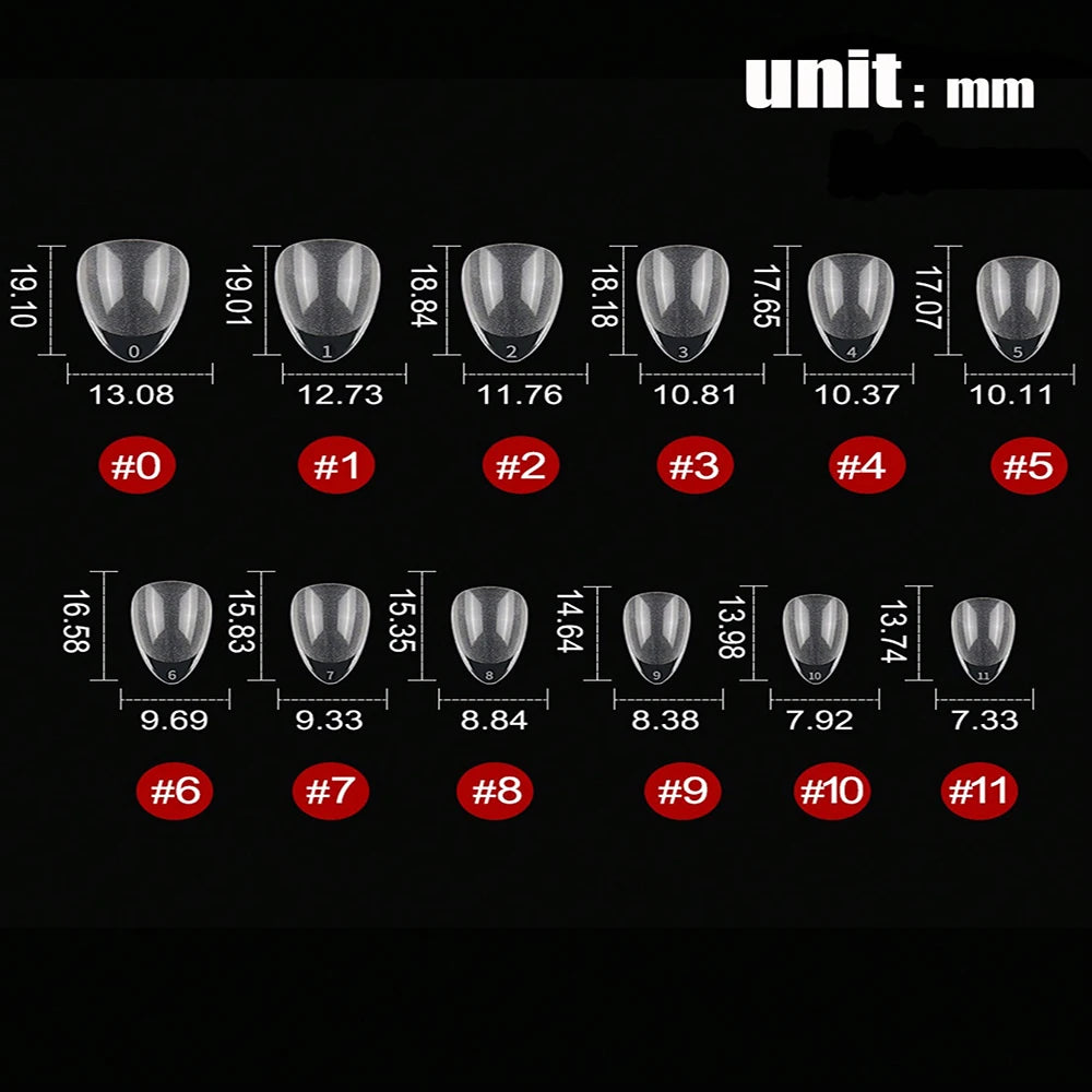 Ce lot de 240 capsules pré-formées en gel doux offre une forme amande courte élégante avec finition semi-mate. Ces faux ongles acrylique à couverture complète transparents sont faciles à appliquer et offrent un résultat professionnel instantané. Parfaits pour les press on nails et le nail art.