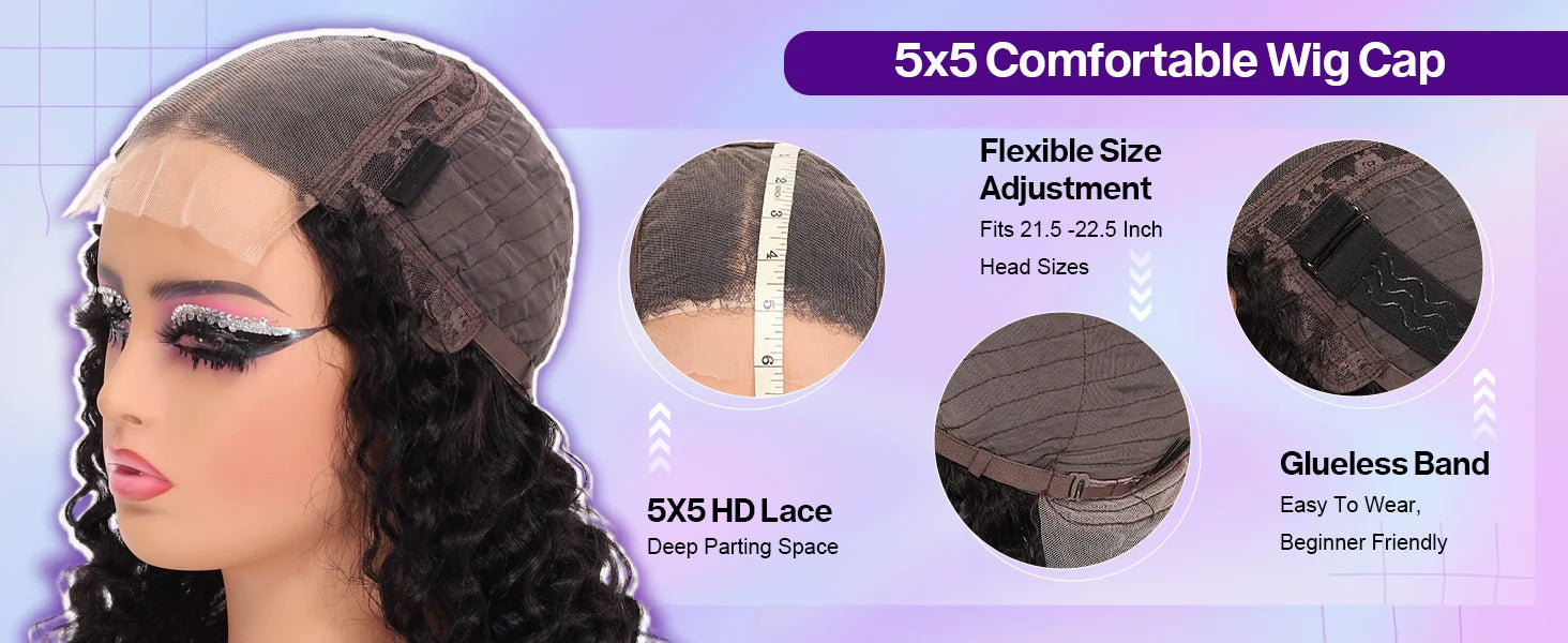 - Lace front 5x5 : Ligne frontale naturelle et invisible