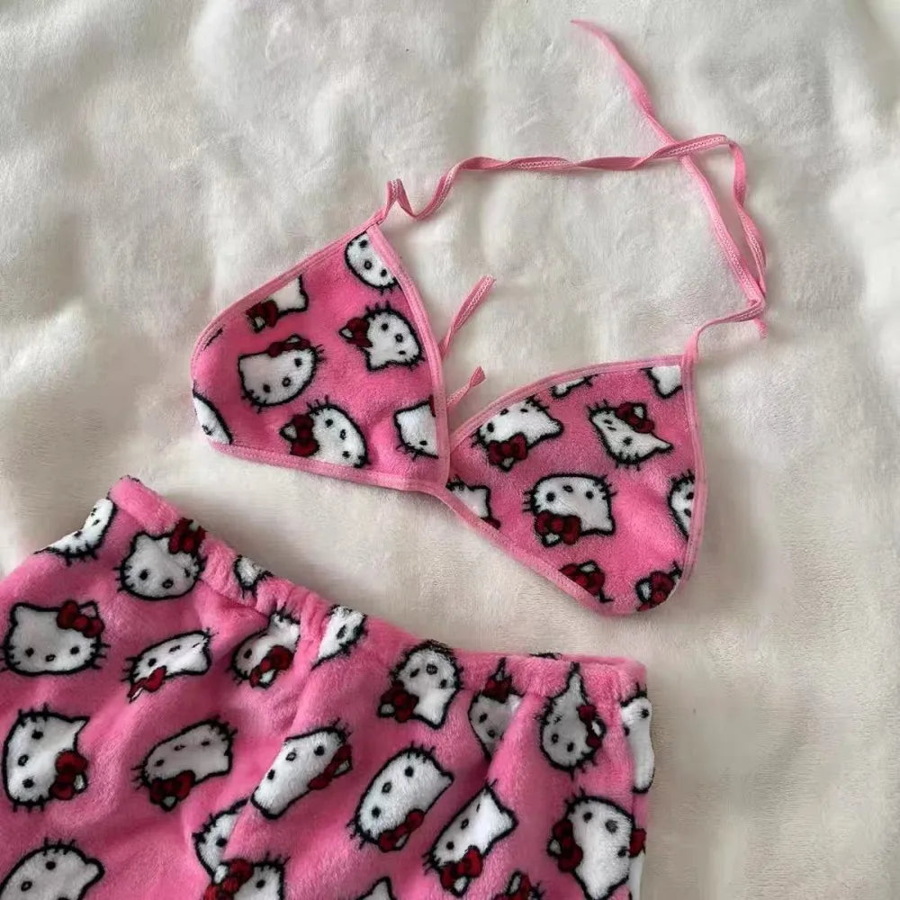 Pyjama Hello Kitty Sanrio 2 Pièces - Brassière Short Été Plage Bikini Kawaii