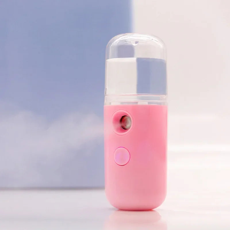 Mini humidificateur portable de 30ml rechargeable pour voiture, maison et bureau. Un brumisateur visage sans fil personnel qui diffuse une brume fraîche pour hydrater votre peau et purifier l'air où que vous soyez.