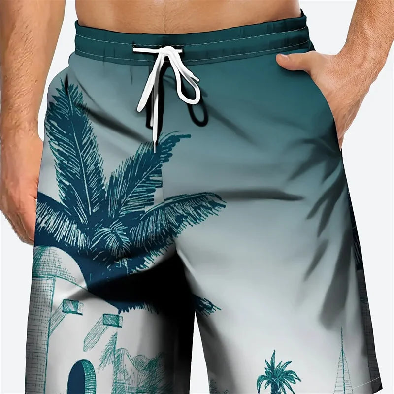 Short de Bain Imprimé Cocotiers 3D - Style Tropical & Confort Absolu
