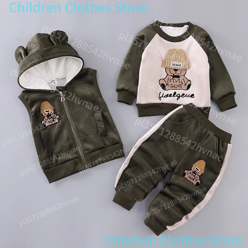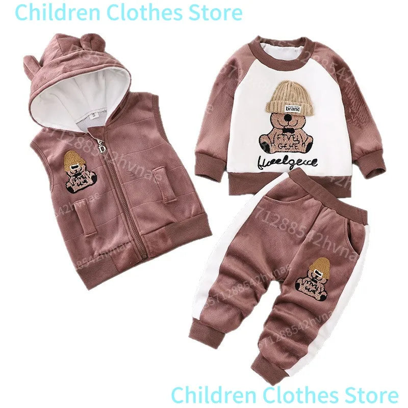 Ensemble 3 Pièces Bébé Hiver - Sweat + Pantalon + Gilet à Capuche - Vêtements Chauds Automne