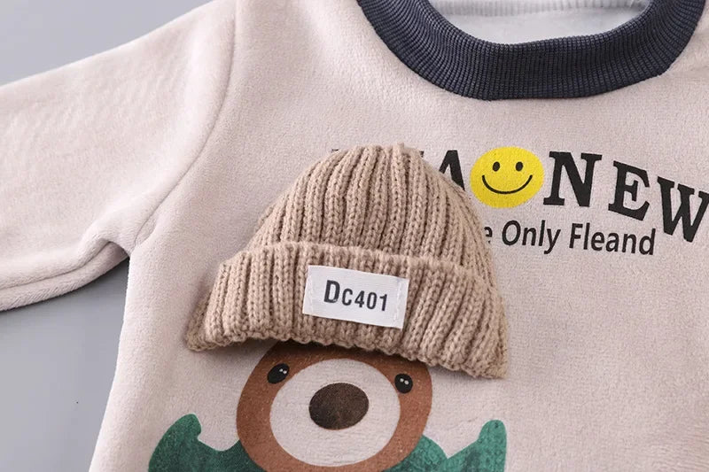 Cet adorable ensemble d'hiver comprend tout ce dont votre bébé a besoin pour rester au chaud : un sweat confortable, un pantalon doux et un gilet à capuche pratique. Parfait pour les tout-petits de 0 à 24 mois.