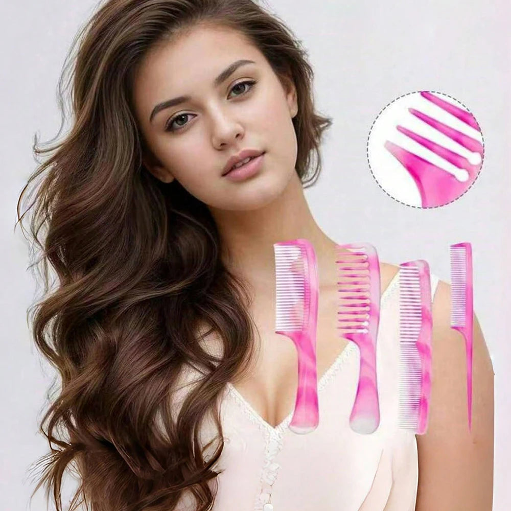 Ce set de 4 peignes aux couleurs bonbon offre une solution complète pour tous vos besoins de coiffage. Comprend un peigne à dents larges, un peigne à dents fines, un peigne queue de souris et un peigne double tête pour un coiffage professionnel à domicile.
