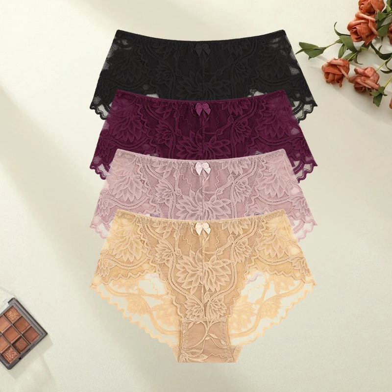 Lot de 4 Culottes Dentelle Sexy - Lingerie Confort et Élégance