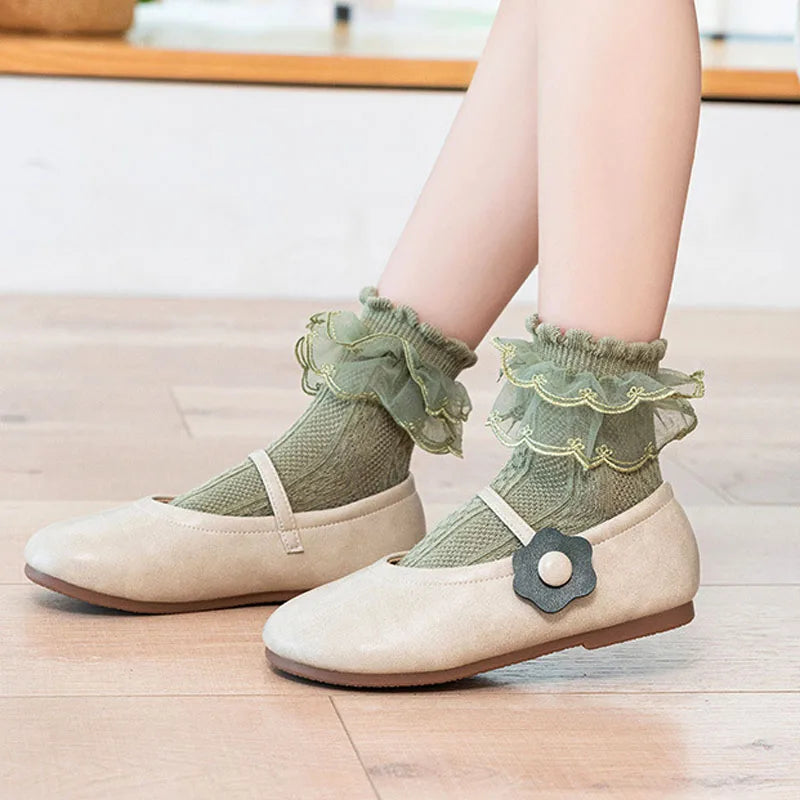 Lot de 5 Paires Chaussettes Fille Dentelle - Volants Princesse Coton Respirant