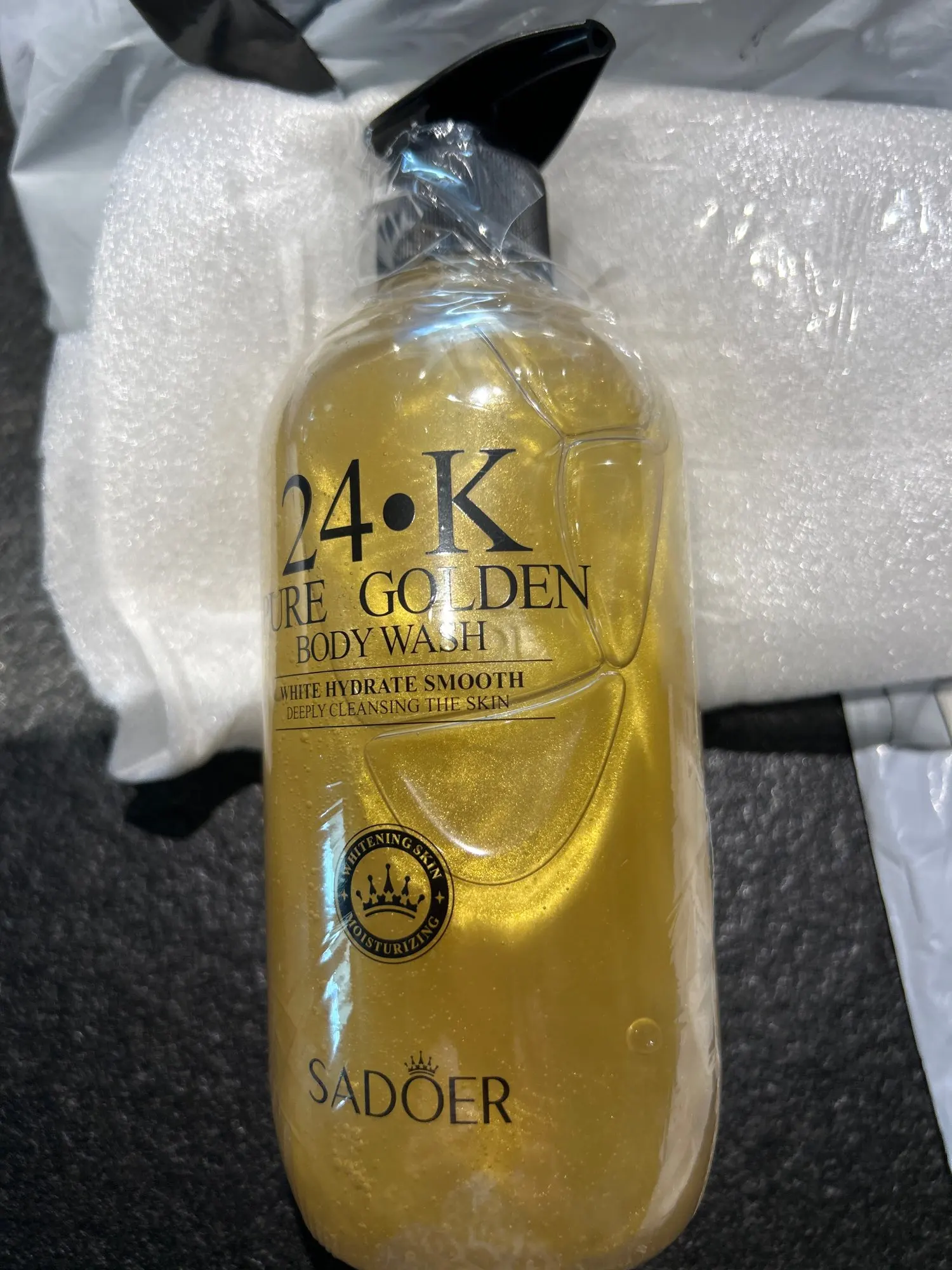 Gel douche luxueux à l'or 24K pur 500ml pour un nettoyage profond du corps avec parfum longue durée. Une mousse de bain riche et onctueuse qui nettoie, hydrate et parfume délicatement votre peau tout en offrant une expérience de douche luxueuse et raffinée pour une peau propre, douce et délicatement parfumée.