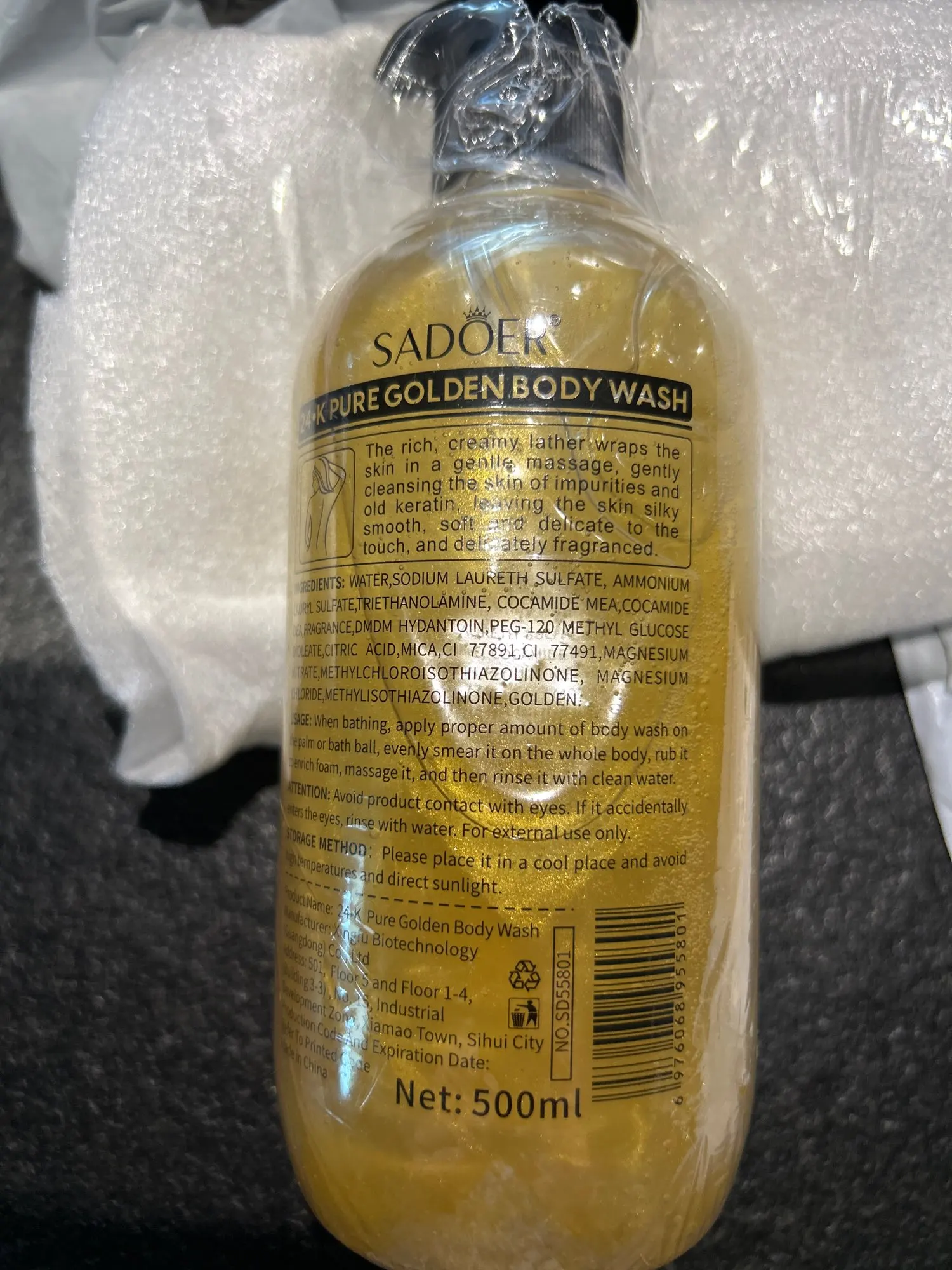 Gel Douche Or 24K Pur 500ml - Nettoyant Corps Parfum Longue Durée Mousse Bain Hydratant Shampooing Peau
