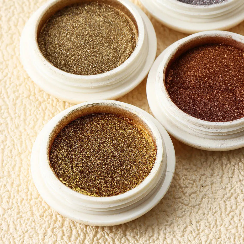 6 poudres paillettes miroir ongles or métallique rose gold argent. UV gel polish chrome pigment flocons manucure décor.