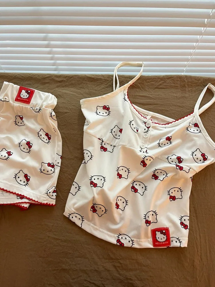Adoptez un style kawaii sexy avec ce pyjama Hello Kitty Sanrio débardeur short, parfait pour l'été et la maison. Design anime sweet student nightwear casual.