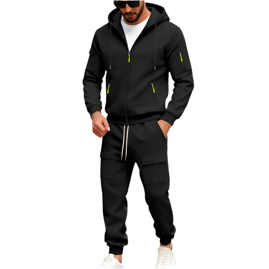 Ensemble Homme 2 Pièces Velours - Sweat à Capuche Loose & Pantalon Workwear Sport Automne-Hiver