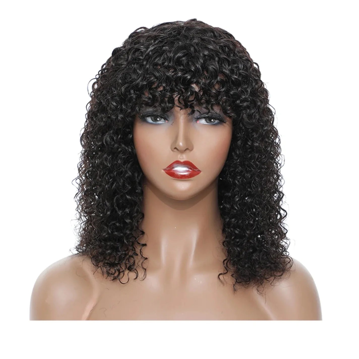 Perruque Bob Courte Jerry Curl - Cheveux Naturels Brésiliens avec Frange