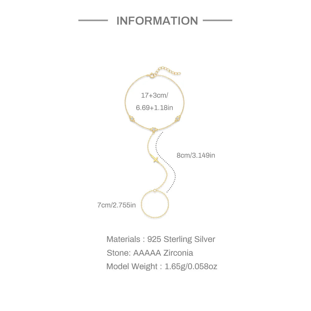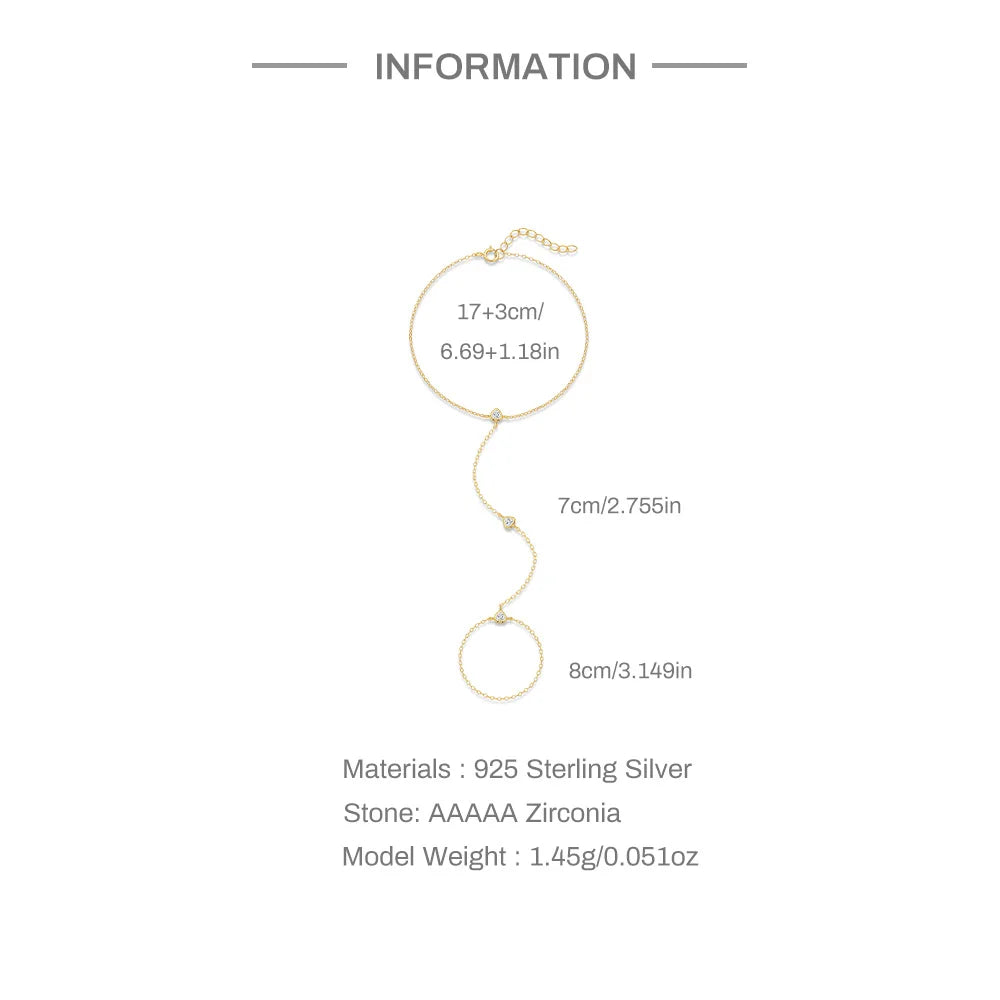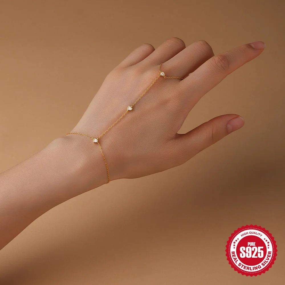 Bracelet Bague Argent 925 Cœur Pétale Zircon - Chaîne Main Femme Minimaliste Scintillant