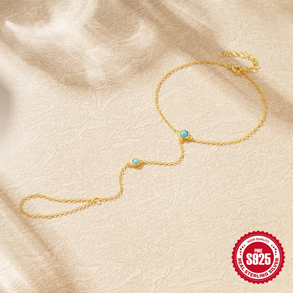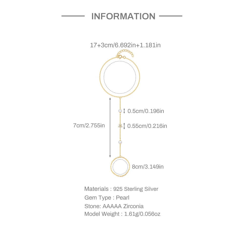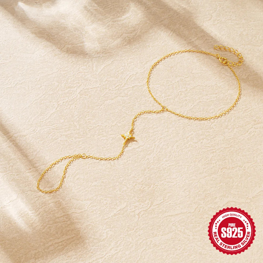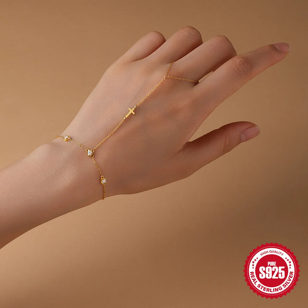 Bracelet Bague Argent 925 Cœur Pétale Zircon - Chaîne Main Femme Minimaliste Scintillant