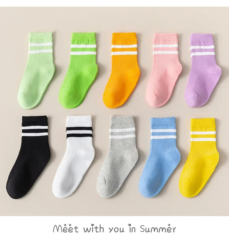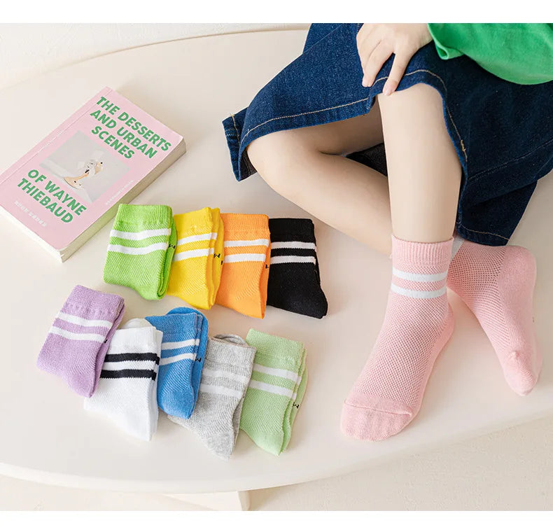 Les activités sportives, l'école, les sorties d'été ou l'usage quotidien. Ces chaussettes transforment chaque moment actif en confort grâce à leur tissu mesh respirant qui évacue l'humidité. Le coton pur garde les pieds au frais et au sec même pendant les journées les plus chaudes. La longueur mi-mollet offre un bon maintien sans glisser. Parfaites pour les enfants actifs qui ont besoin de chaussettes confortables, respirantes et durables pour leurs aventures estivales.