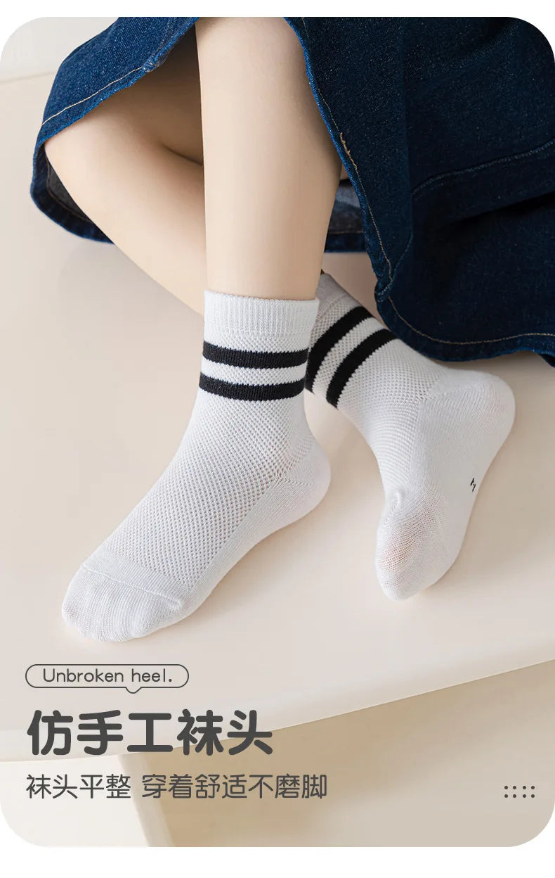 Lot Chaussettes Blanches Enfant - Socquettes Coton Mesh Respirantes Mi-Mollet Été Sport