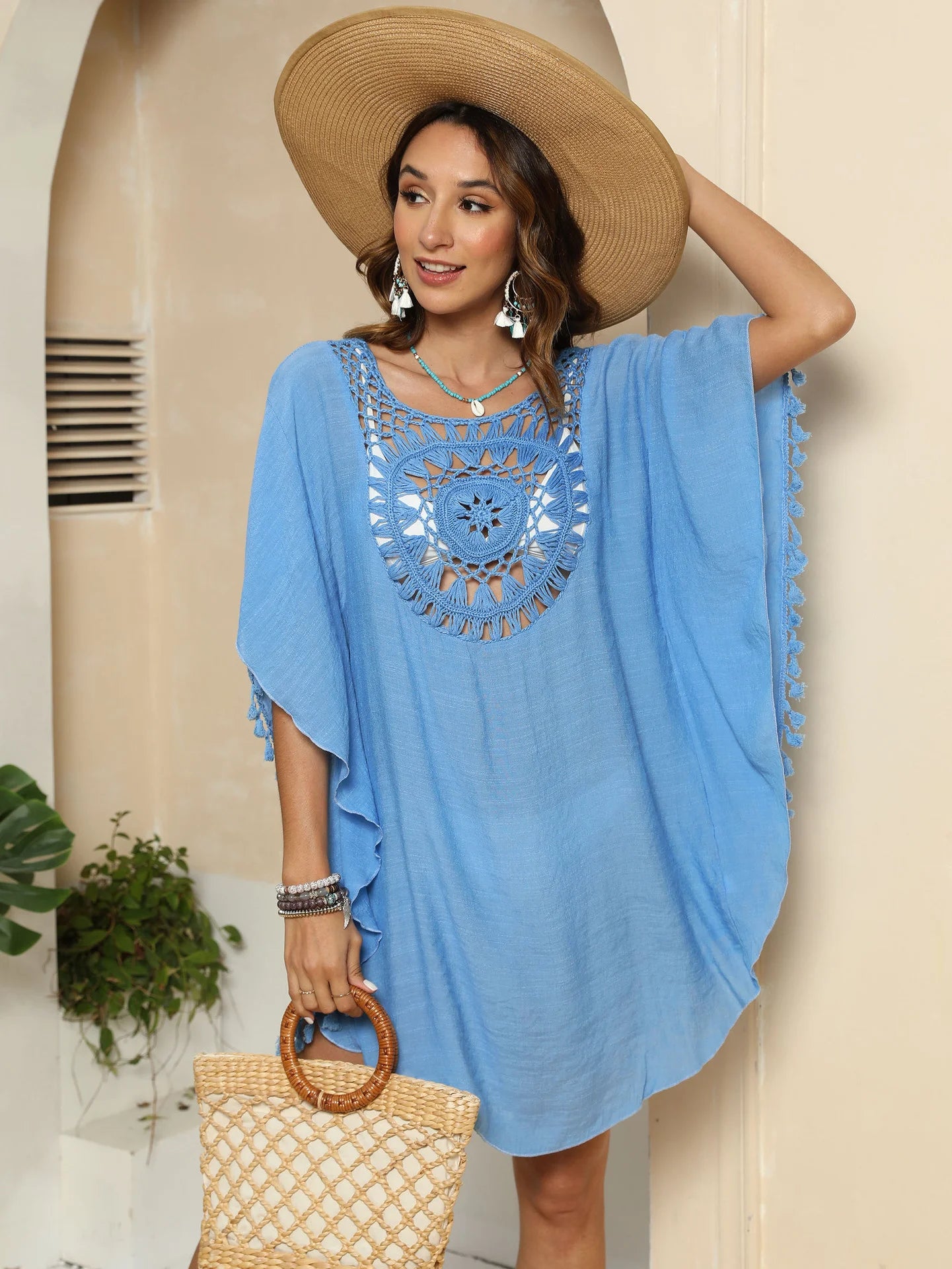Les sorties de plage, les promenades en bord de mer, les déjeuners en terrasse, ou simplement pour ajouter une touche bohème chic à votre look de vacances. Cette robe cover-up combine style et fonctionnalité pour vous accompagner avec élégance du sable à la ville.