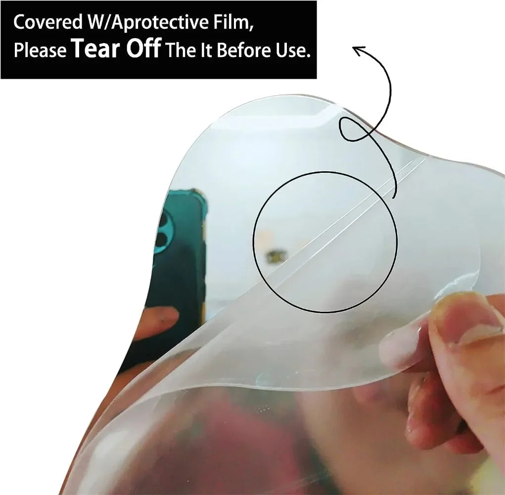 Miroir décoratif en acrylique avec base en bois pour une touche minimaliste et élégante. Un miroir de maquillage irrégulier au design unique parfait pour votre chambre, coiffeuse ou espace beauté qui allie fonctionnalité et esthétique moderne.