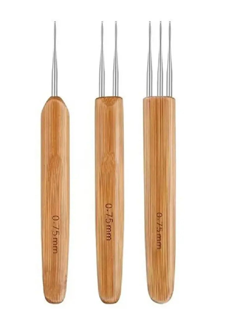 Crochet pour dreadlocks avec manche en bois disponible en 0.5mm et 0.75mm. Set de 1, 2 ou 3 aiguilles professionnelles pour créer et entretenir vos tresses, locks et dreadlocks avec précision et facilité.