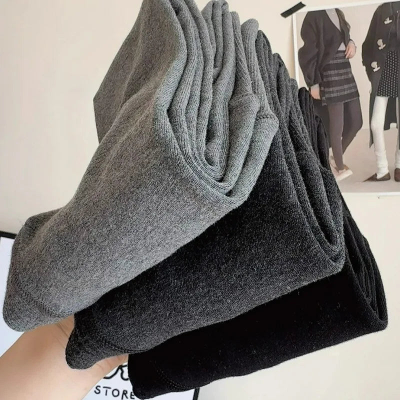 Collants Femme Fashion Gris Tricotés Pression - Automne Hiver Taille Haute Élastiques Streetwear Stocking 2026 Basic Pantyhose