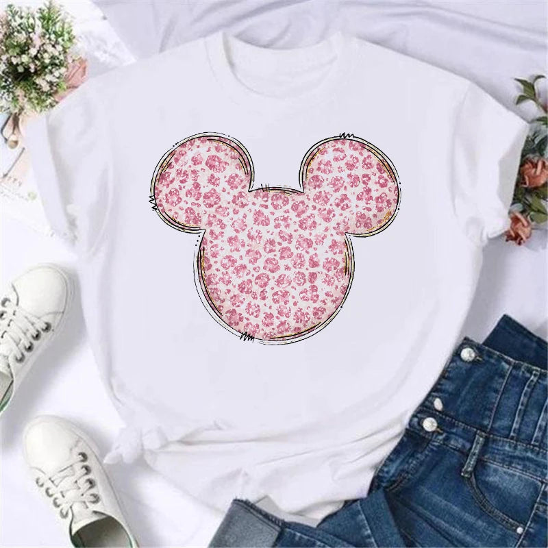 T-Shirt Disney Mickey Minnie Léopard - Femme Homme Enfant - Manches Courtes Casual