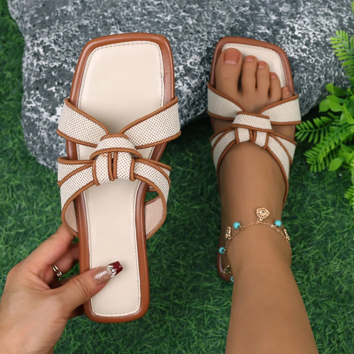 Sublimez vos tenues estivales avec ces sandales plates semi-pantoufles élégantes et tendance. Dotées d'une semelle en caoutchouc antidérapante et d'un design haut de gamme, ces chaussures d'extérieur allient style raffiné, confort optimal et praticité pour vos journées d'été.