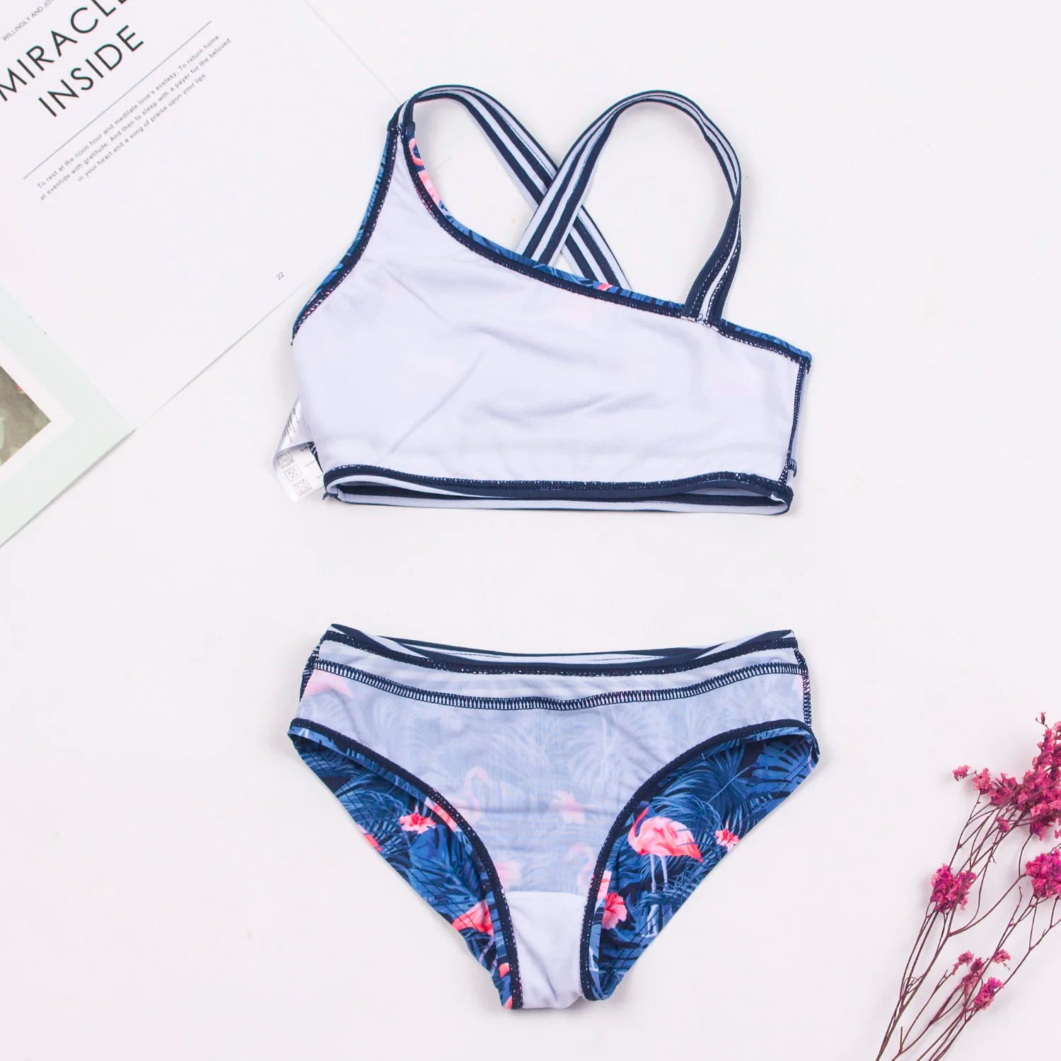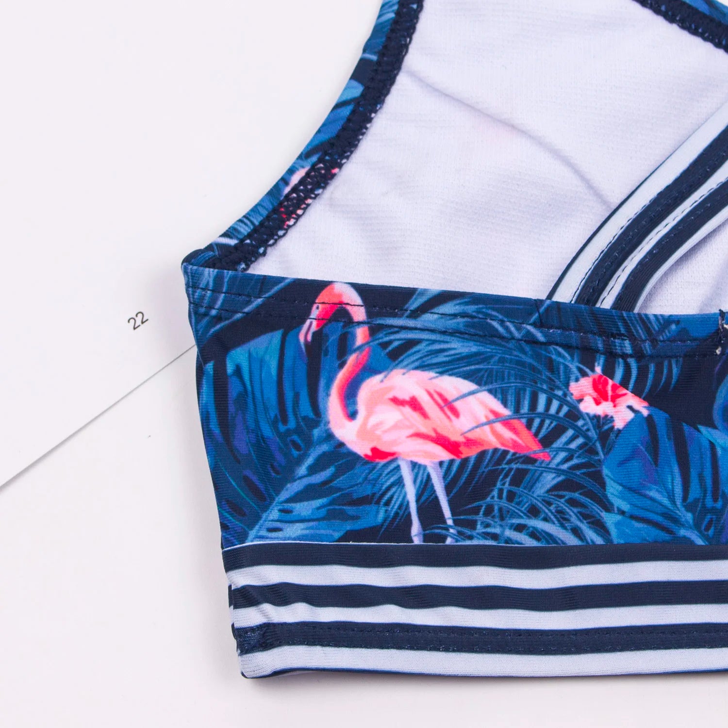 Bikini Fille 2 Pièces Imprimé Flamant Rose - Maillot de Bain Patchwork