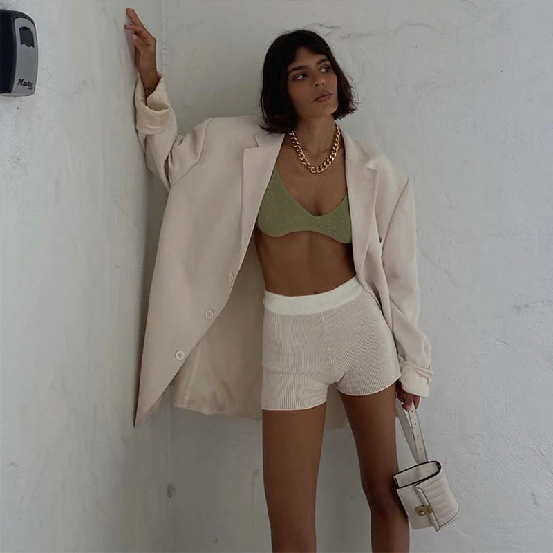 Short en tricot de coton taille haute pour femme. Coupe droite sexy, parfait pour le yoga et le quotidien.