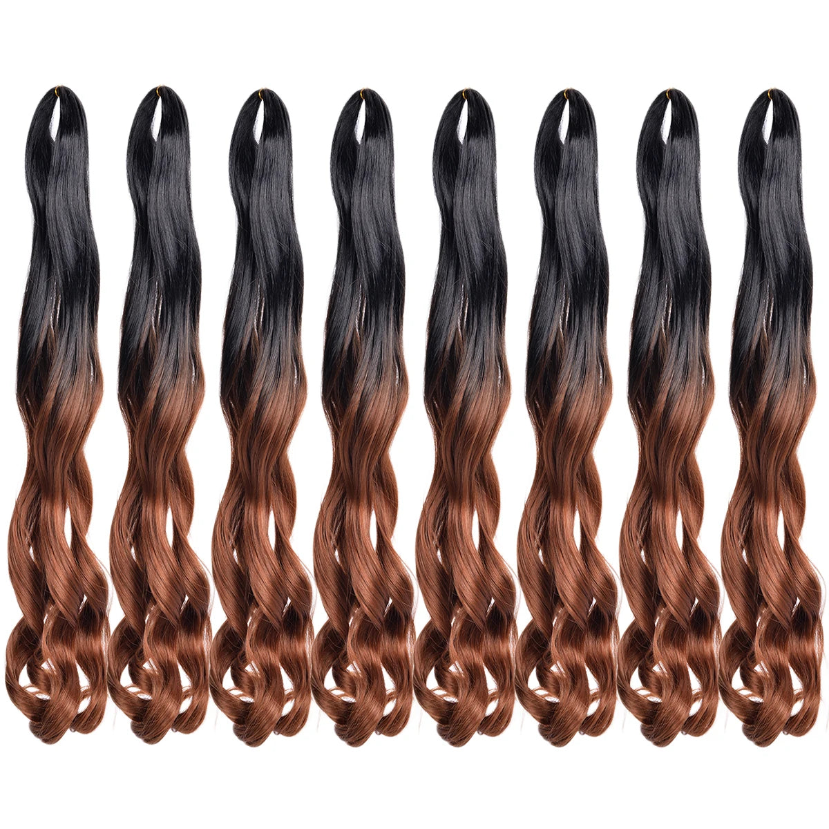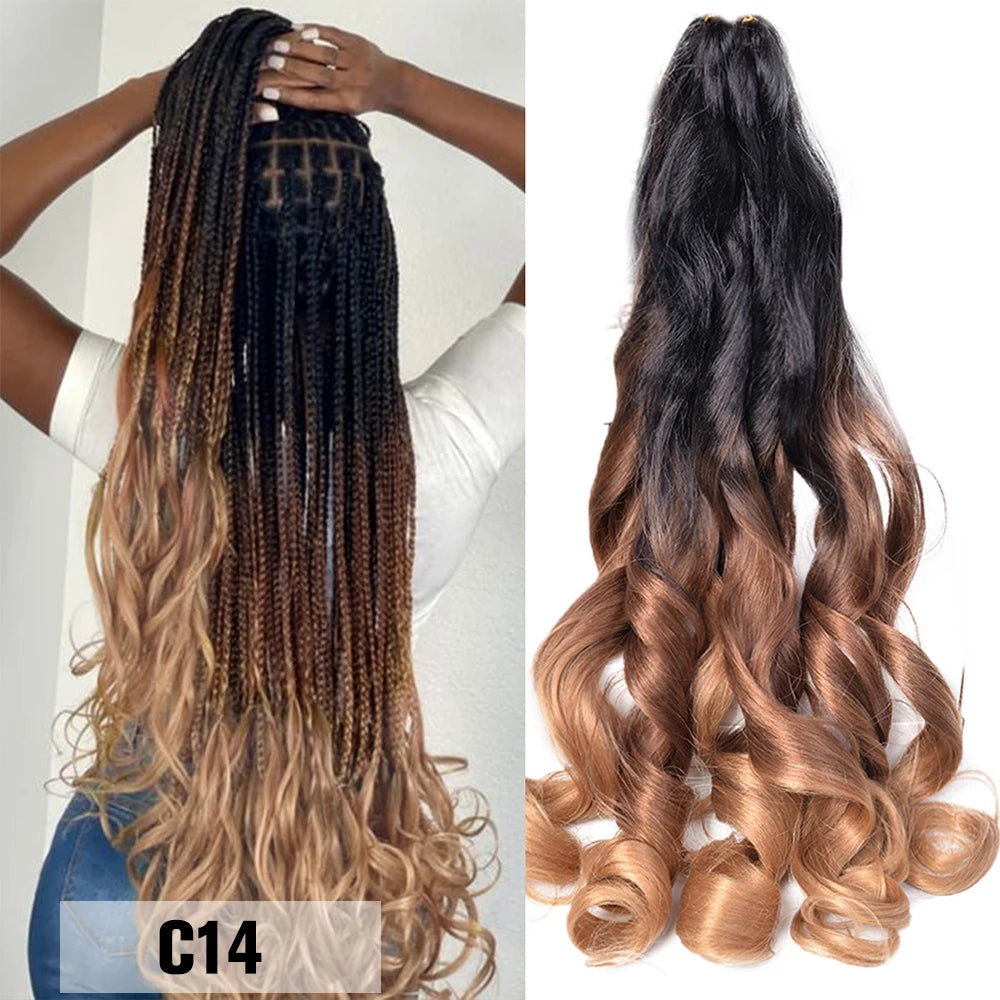 Extension Tresses French Curls Pré-Étirées - Mèches Synthétiques Loose Wave Spiral Curl Haute Température Ombré