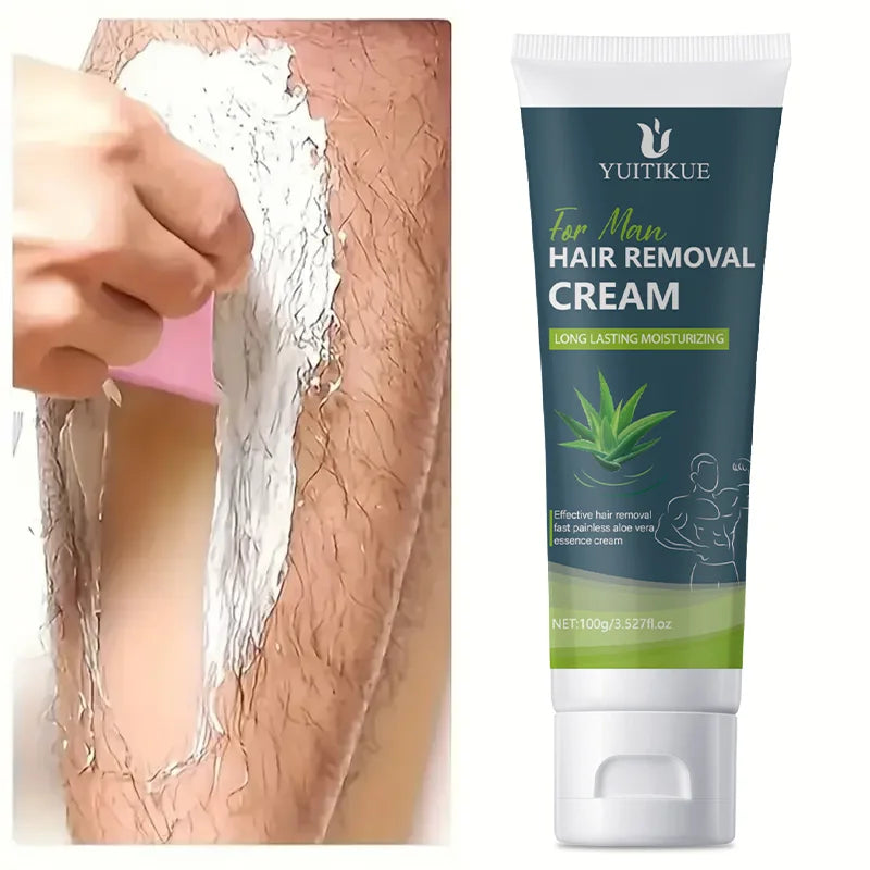 Éliminez les poils indésirables en douceur avec notre crème dépilatoire pour homme.