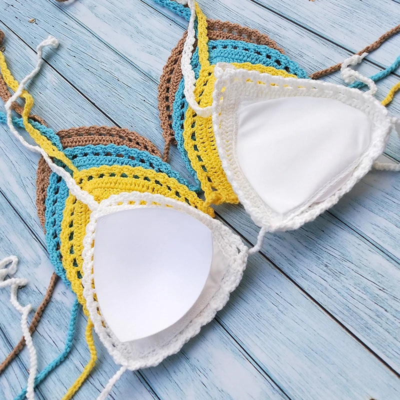 Ensemble Bikini Micro Crochet avec Doublure et Coussinets - Maillot de Bain Sexy