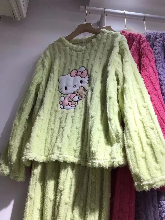 Pyjama Hello Kitty Velours Femme - Flanelle Chaud Automne Hiver Cartoon Cute Cadeau
