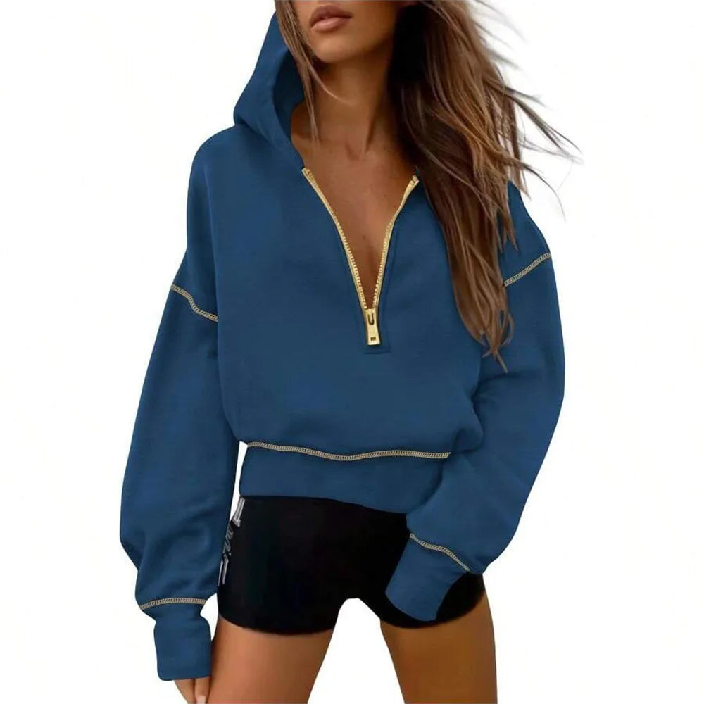 Sweat Court à Capuche Demi-Zip pour Femme - Style Casual Chic