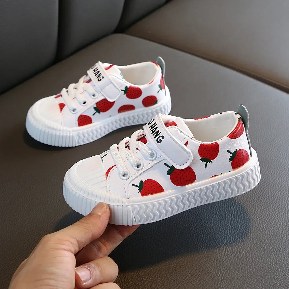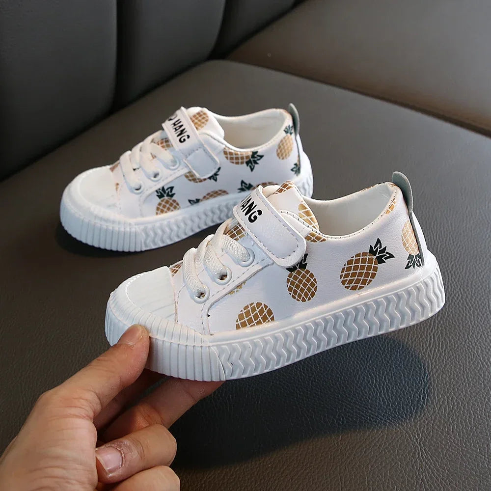 Adorables et confortables Chaussures Sport Fille Design Ananas & Fraise - semelle souple, antidérapante en cuir PU pour enfants actifs.