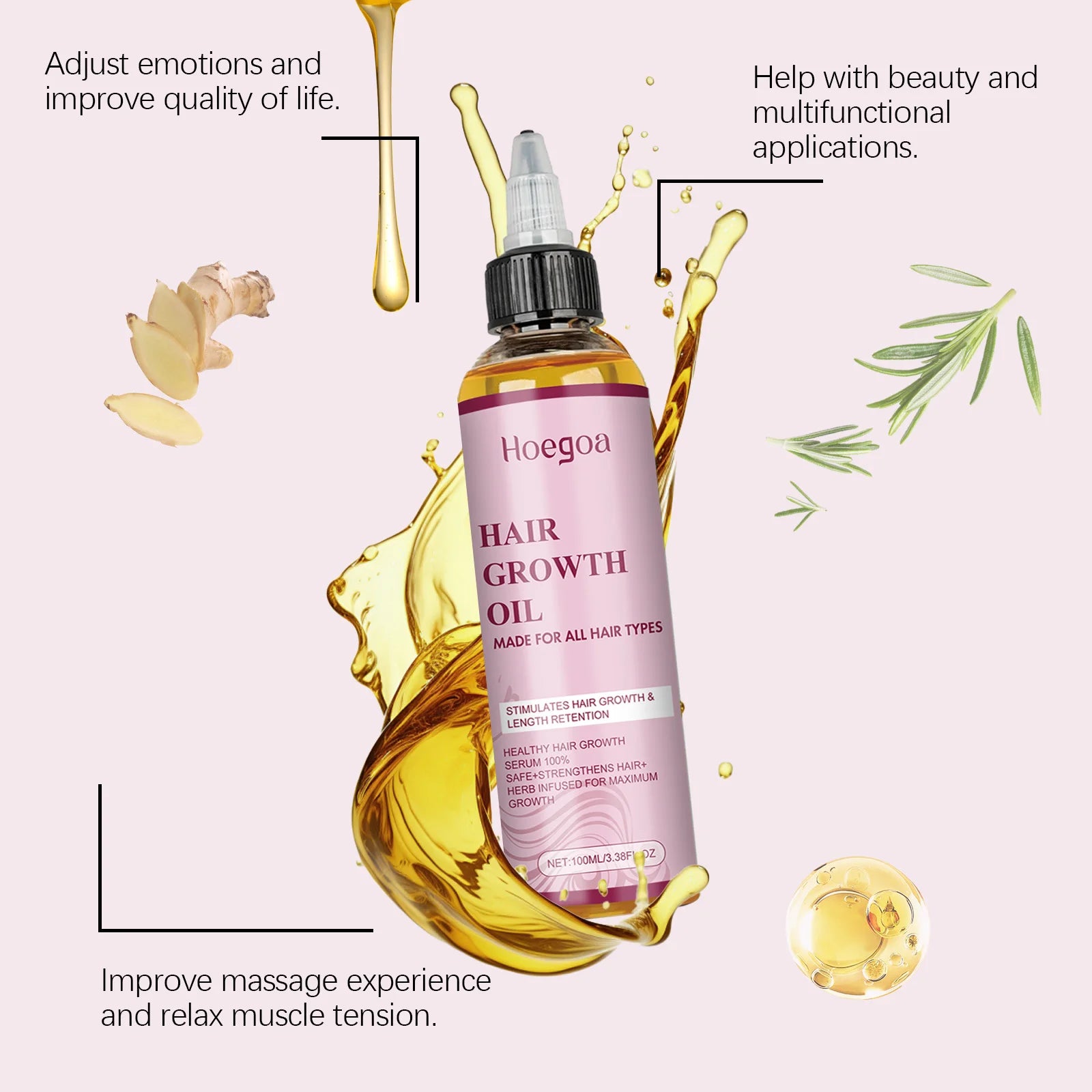 Huile de croissance capillaire au romarin et ricin pour renforcer, réparer et nourrir les cheveux secs et abîmés. Formule multifonction pour tous types de cheveux.