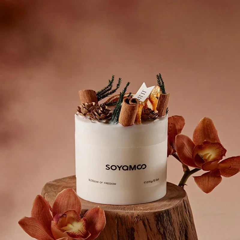 Bougies Parfumées Fleurs Séchées - Bougie Florale Cannelle | Parfum d'Ambiance Premium