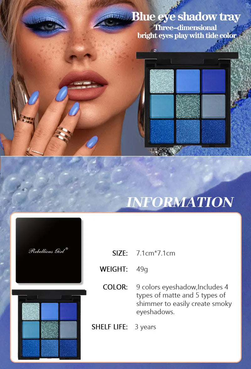 Palette Fard à Paupières Bleu Luxe 9 Couleurs - Glamour Intense