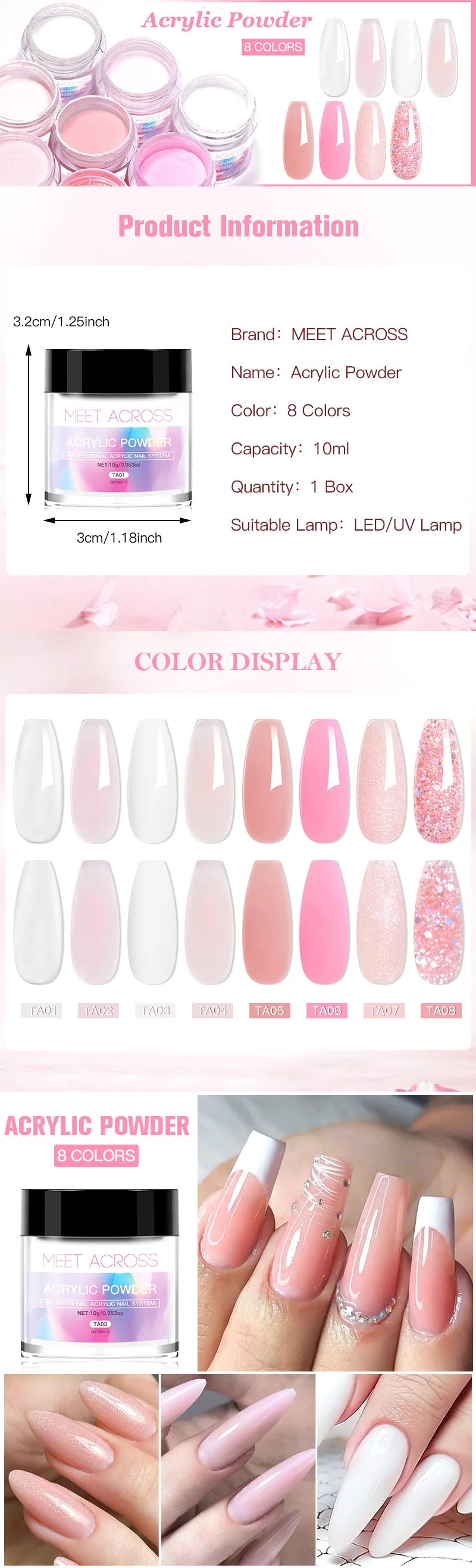 Créez des ongles acrylique parfaits avec la poudre MEET ACROSS 10g.